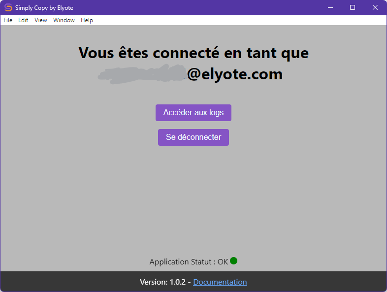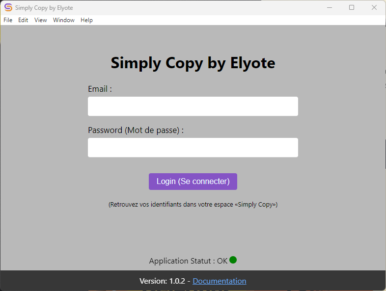 (dans la barre des tâches) et cliquer sur « quitter / exit » puis de la relancer. - vous reconnecter dans l’application Simply Copy en ouvrant la fenêtre après le clic droit puis en cliquant sur « se déconnecter », puis en remplissant de nouveau le formulaire de connexion.