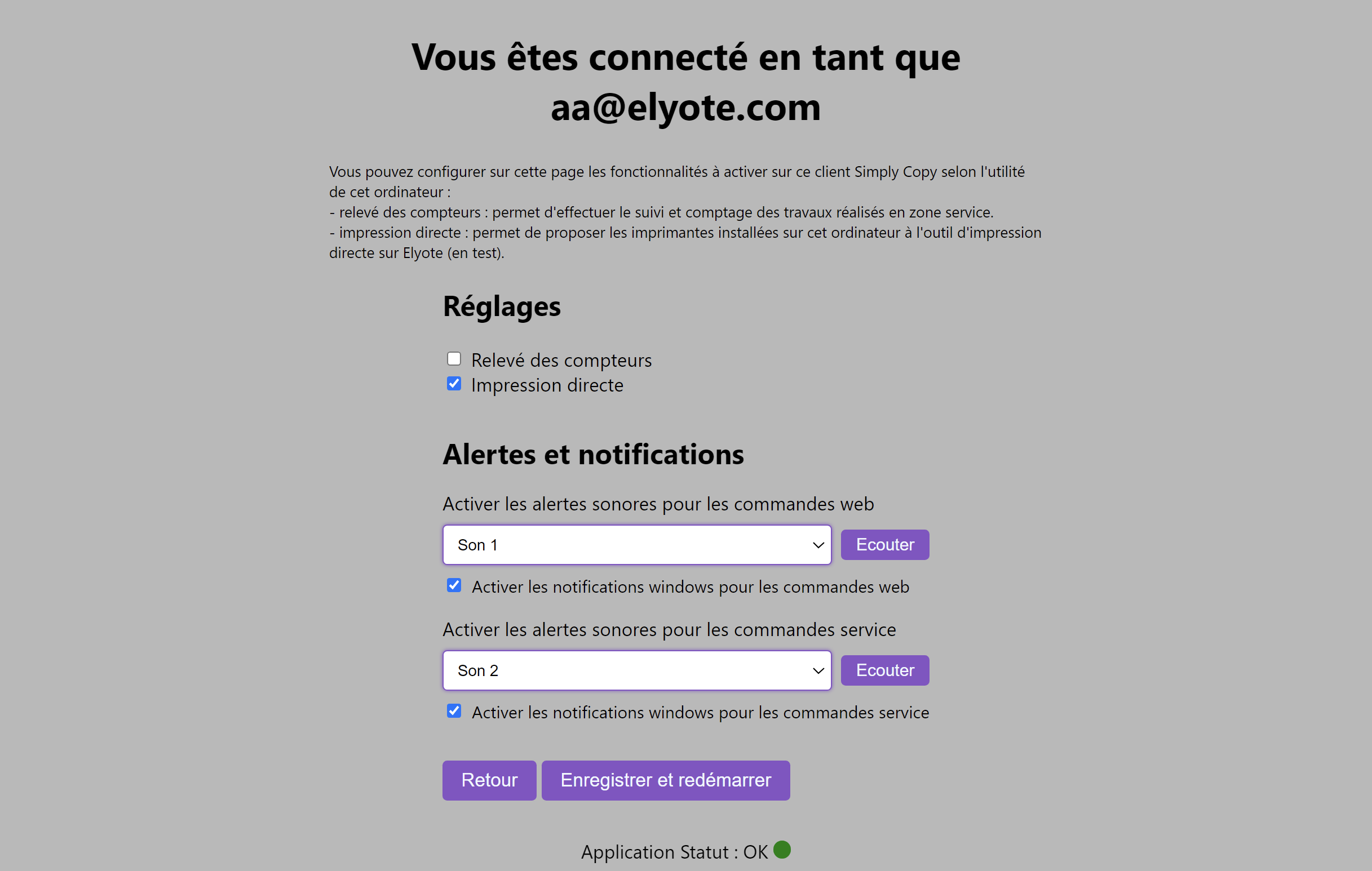 Selon votre abonnement et vos options, vous pouvez activer des réglages additionnels dans Simply Copy si ceux sont possibles pour votre accès.